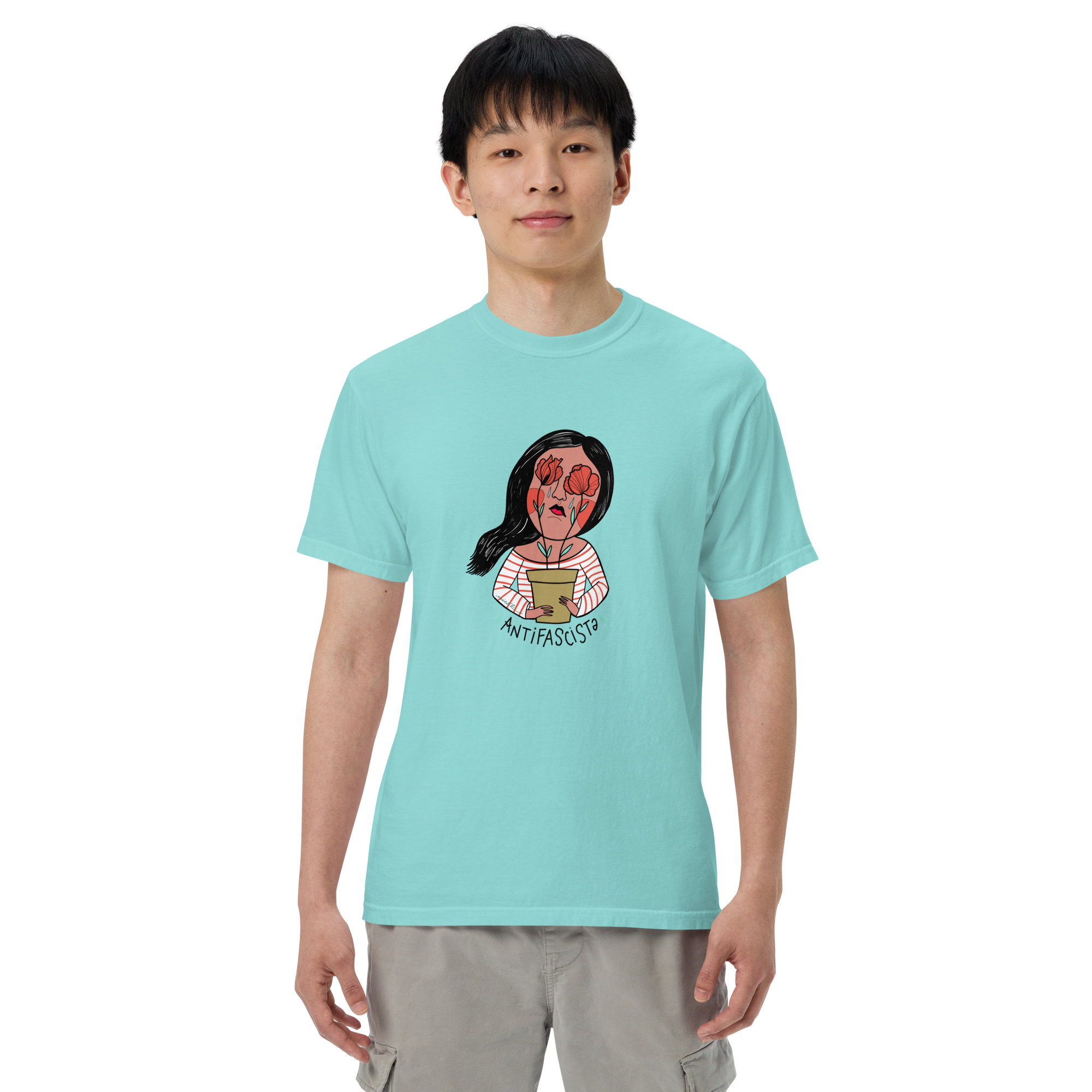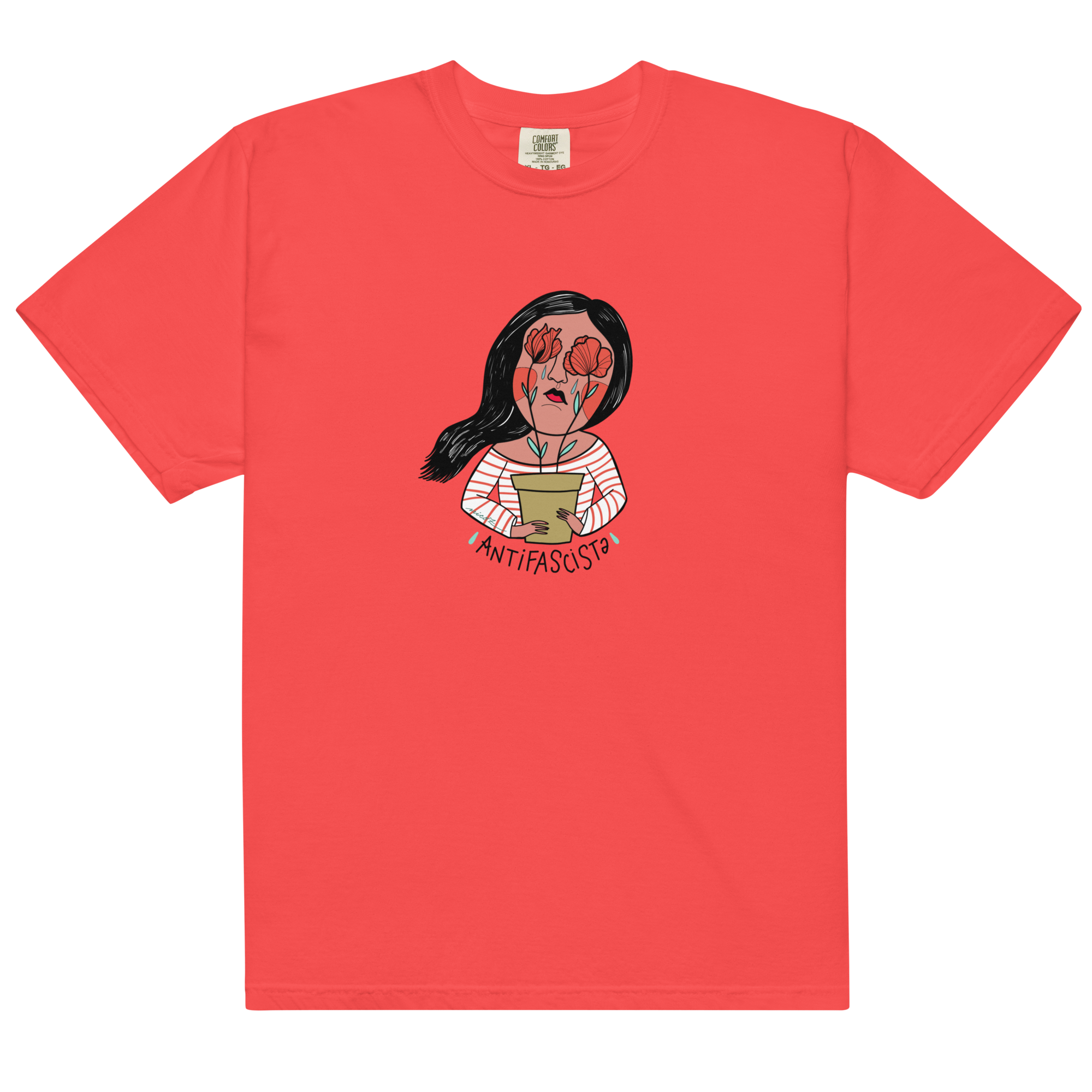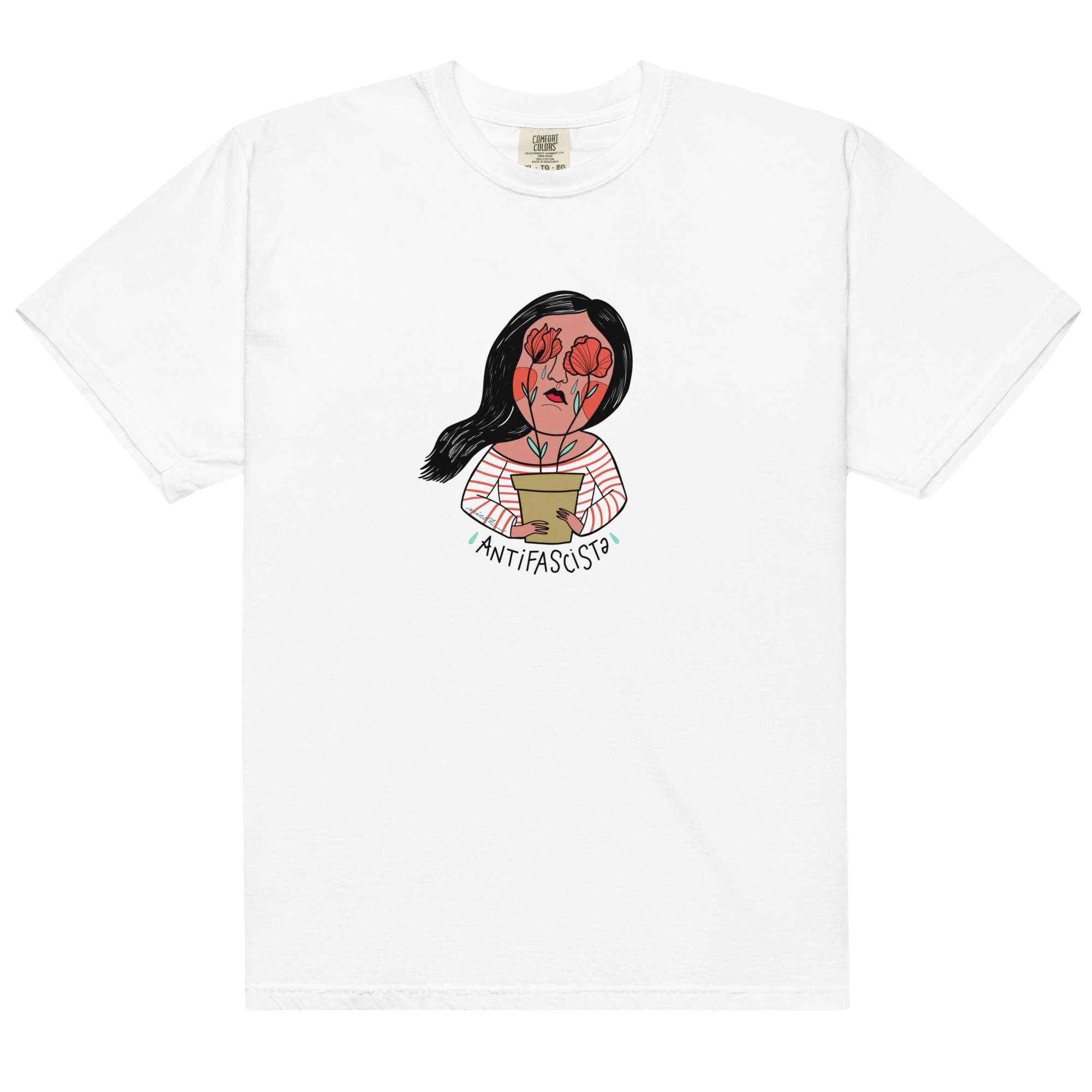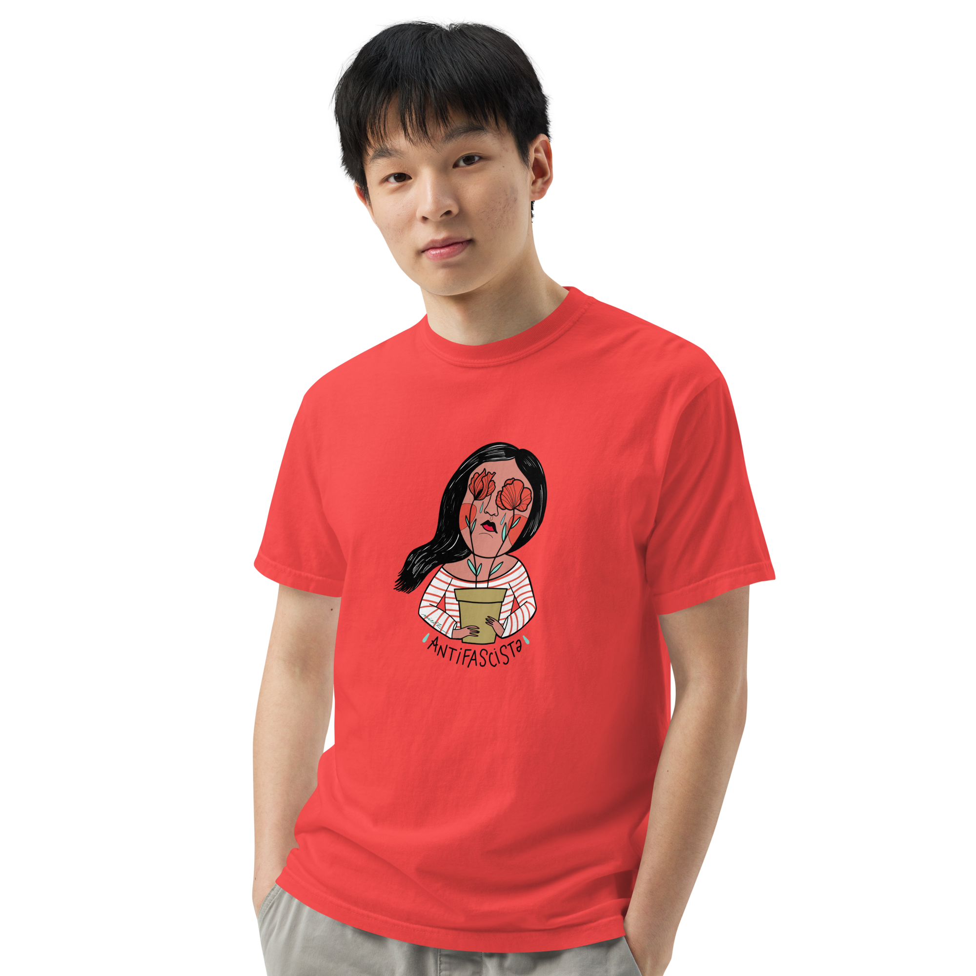 This unisex antifascist t-shirt features one of two bold illustrations — a masc or femme character proudly standing with the iconic red poppy, symbol of Italian Liberation and resistance.