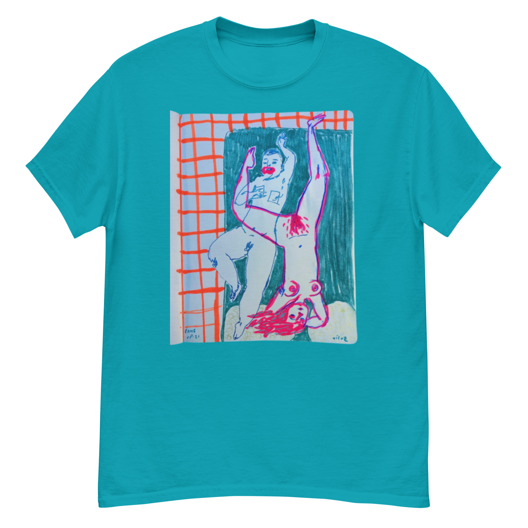 This unisex classic tee features an illustration taken from my graphic journal, inspired by an after-s3x moment between two queer people, oupsy!. The drawing doesn’t show an act, but a state: closeness, softness, bodies resting after intimacy. It’s about queer desire, tenderness, and connection—told through line, memory, and feeling.